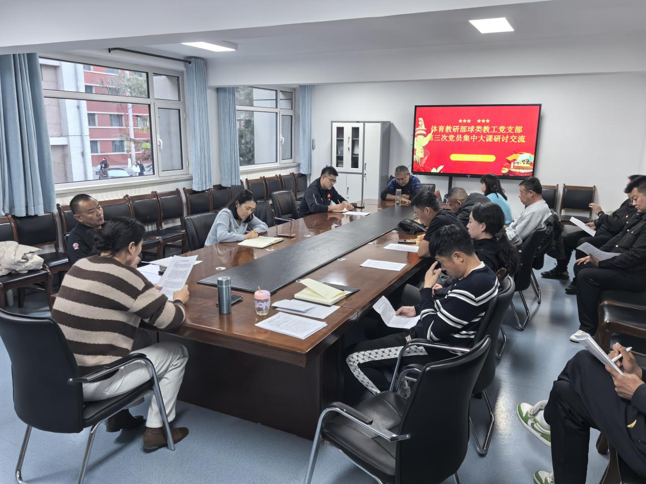 2025年12月11日,我校2025年党员基本培训第三次集中大课结束后,体育教研部球类教工党支部及时组织全体党员召开专题交流研讨会。交流研讨紧扣“深入学习贯彻习近平文化思想”主题,立足球类教学、训练、竞赛特色,探索“体育+文化”融合育人新路径,推动理论学习与实践工作深度衔接。